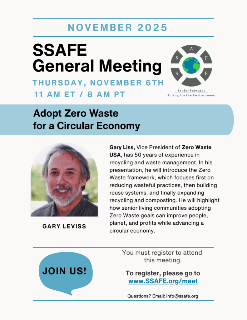 Gary Liss, Vice President of Zero Waste USA, has 50 years of experience in recycling and waste management. In his presentation, he will introduce the Zero Waste framework, which focuses first on reducing wasteful practices, then building reuse systems, and finally expanding recycling and composting. He will highlight how senior living communities adopting Zero Waste goals can improve people, planet, and profits while advancing a circular economy.