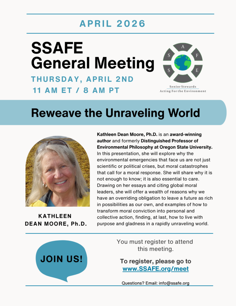 Join us for a presentation by Kathleen Dean Moore, Ph.D. an award-winning author and formerly Distinguished Professor of Environmental Philosophy at Oregon State University. In this presentation, she will explore why the environmental emergencies that face us are not just scientific or political crises, but moral catastrophes that call for a moral response. She will share why it is not enough to know; it is also essential to care. Drawing on her essays and citing global moral leaders, she will offer a wealth of reasons why we have an overriding obligation to leave a future as rich in possibilities as our own, and examples of how to transform moral conviction into personal and collective action, finding, at last, how to live with purpose and gladness in a rapidly unraveling world.